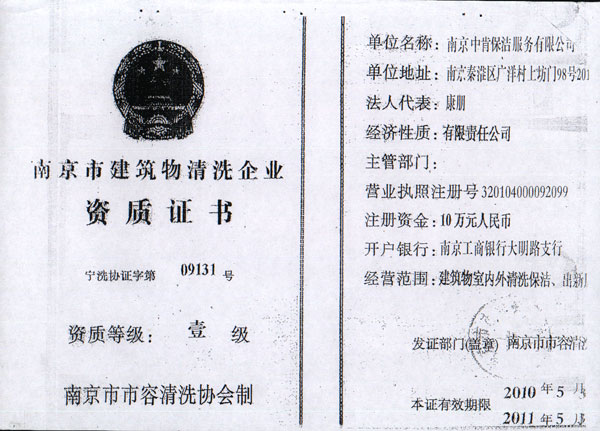 南京保潔公司注冊資金10萬元,是江蘇省家庭服務協會會員單位,江蘇省家政服務業分類執行標準起草制定單位,先后被評為江蘇誠信服務先進單位、南京是家政服務定點培訓單位、南京市十佳建筑物清洗企業、南京市誠信示范單位、南京市鼓樓區三信三優單位。董事長康朋是江蘇省家庭服務業協會副會長、江蘇省家政服務分類執行標準主要起草人。